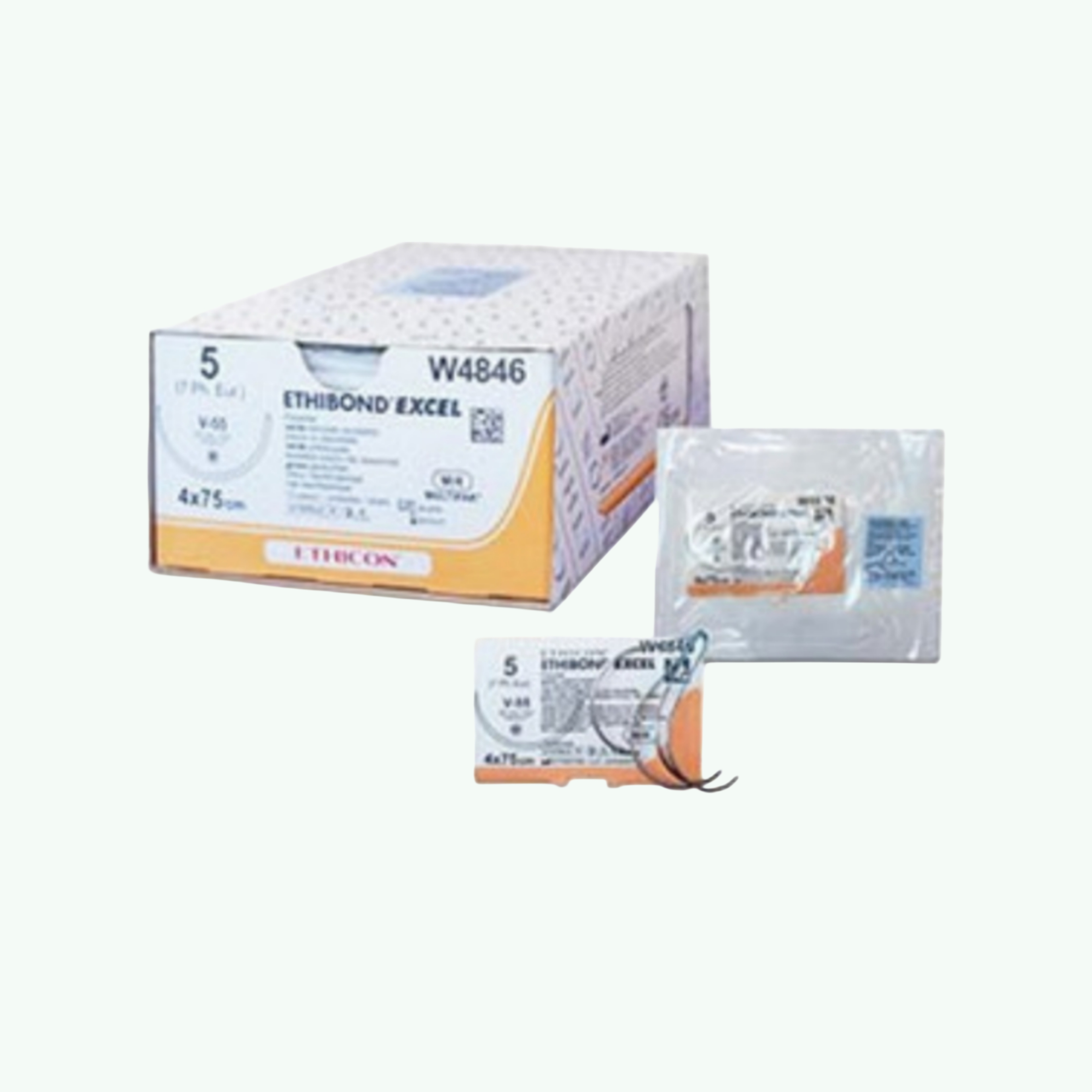 Cardiovascular surgery, orthopaedic repairs, fascial closure in abdominal procedures, ophthalmology, neurological tissue fixation — these are not situations that tolerate a suture that degrades, stretches, or loses its tensile strength after placement. The tissues being approximated need to remain approximated indefinitely. The suture is expected to maintain its mechanical properties for the life of the patient. Ethicon Ethibond Excel is a non-absorbable braided polyester suture — polyethylene terephthalate (PET) monofilament fibres woven into a braided multifilament structure and coated with polybutylate, a unique coating compound developed by Ethicon. Polybutylate is a semi-crystalline co-polymer that bonds to the polyester braid mechanically rather than as a surface film, providing a coating that does not flake off or degrade over time. The coating gives Ethibond Excel its characteristic smooth tissue passage and handling properties without the coating failure that can occur with wax or silicone coatings on other braided sutures. The W4846 designation identifies a specific needle-strand combination: USP size 5 (EP gauge 6) green braided suture, four 75cm strands per package, fitted with the V-55 needle — a large, heavy-gauge 1/2 circle taper-cut needle designed for tough, fibrous tissue that requires more cutting force than a standard taper-point would provide. The V-55 needle is commonly used in large orthopaedic applications, fascial repair, and tendon surgery. The green dyeing provides high visual contrast against tissue, which is a clinical priority in procedures where suture retrieval and knot identification must be rapid and unambiguous. The braided structure provides reliable knot security — critical in permanent sutures where post-operative knot slippage would compromise the repair. For surgical supply distributors, Ethibond Excel is a standard catalogue item in suture product ranges, particularly those serving orthopaedic, cardiovascular, and general surgery units. Sara Wellness exports Ethicon surgical sutures to medical distributors internationally.