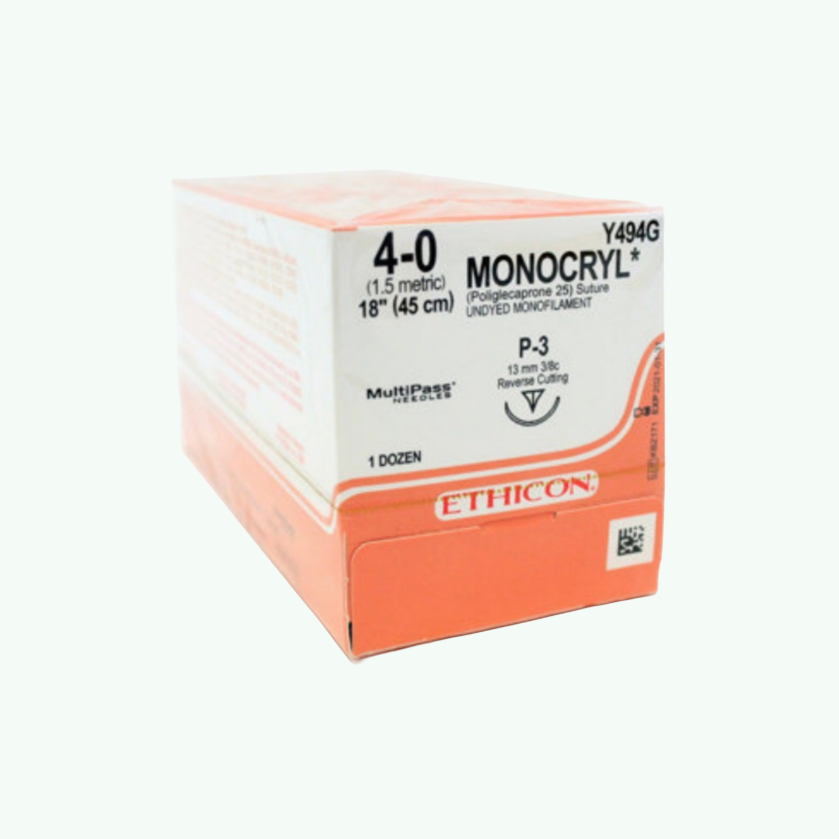 Wound closure after elective facial surgery, delicate subcuticular skin closure, ophthalmic procedures, and any case where the surgeon wants the suture to dissolve cleanly within a few weeks without inflammation — this is where MONOCRYL earns its position as one of the most prescribed synthetic absorbable sutures in the world. Ethicon MONOCRYL is a synthetic absorbable monofilament suture composed of a copolymer of glycolide and epsilon-caprolactone (poliglecaprone 25). The glycolide-caprolactone chemistry was specifically engineered to produce a material with a short absorption timeline and a very low tissue reactivity profile — properties that distinguish it from older absorbable monofilaments. The absorption profile is predictable: MONOCRYL retains approximately 50-60% of its original tensile strength at 7 days and approximately 20-30% at 14 days post-implantation, with complete mass absorption by hydrolysis occurring within 90-120 days. The short strength retention window makes MONOCRYL the ideal choice for skin closure and subcuticular closures where the wound only requires suture support for 7-10 days, after which the healed tissue provides its own strength. For procedures requiring prolonged tissue support, polydioxanone (PDS II) or polyglactin (Vicryl) are more appropriate. The Y494G designation identifies a specific product: size 4-0 (EP 1.5), undyed (not violet), single strand 18" (45cm), P-3 needle (13mm, 3/8 circle, precision reverse cutting). The undyed formulation is preferred for cosmetically sensitive skin closure where violet pigment visibility at the skin surface is undesirable. The P-3 needle is a small, precise needle suited for delicate tissue passage. For surgical suture distributors, MONOCRYL is a high-volume, consistently ordered product across surgical, obstetric, and aesthetic surgery segments. Sara Wellness exports Ethicon sutures internationally.